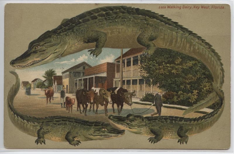 My personal collection includes very few alligator border post cards, however, because of their rarity.