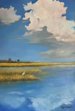 I like her capture of the vast marshes, the blue skies, the blue water, the distant hammock, and the lonely bird enjoying the solitude.
