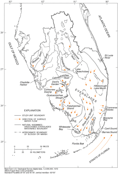 The waters continued to flow in the Everglades as they had historically done and as shown on this map from Wikipedia.