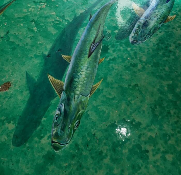 The Florida Key Lime Pie Company InteriorAs you approach the storefront you are walking across the painted blue waters of what could be imagined as the Florida Keys with lifelike Tarpon, Jack Crevalle, and Mullet leading your way to the entrance.